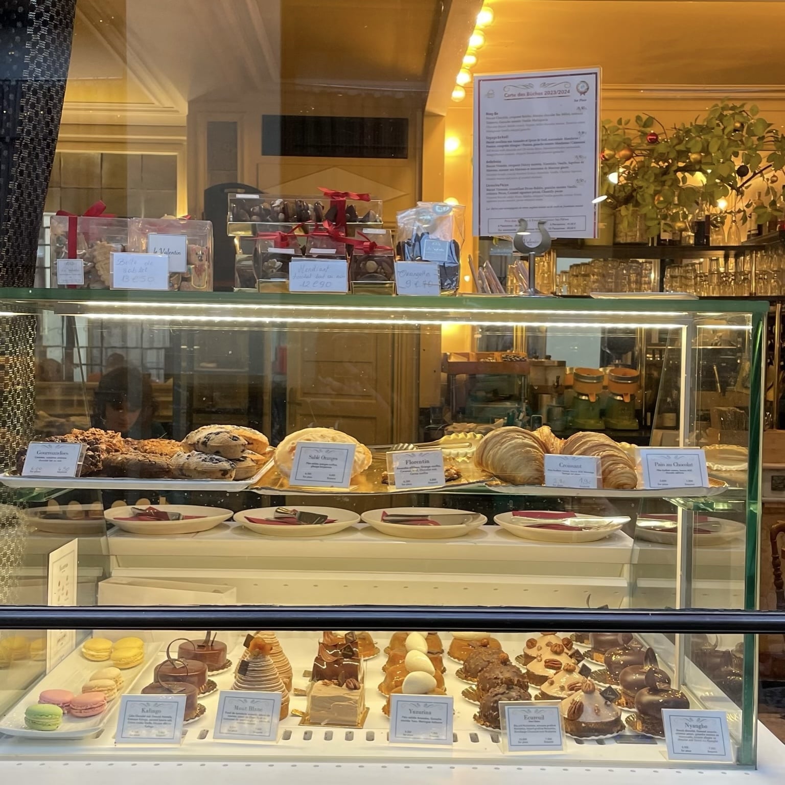 床の大理石モザイク、優雅なアーチが連なる内装などから、パリで最も美しいパッサージュだと言われるギャラリーヴィヴィエンヌ。中には、煌めくケーキやスイーツが揃うサロン・ド・テなどもあります?