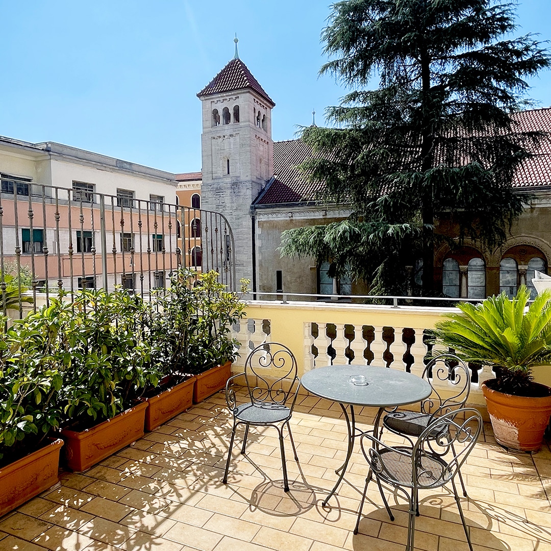 まず、紹介するのがローマの「ホテル ヴィラ ピンチアーナ」。ヨーロピアンテイストの空間、豪華な朝食、快適なルームサービスをコスパ良く楽しめるホテル。ローマの主要駅テルミニ駅から約20分、トレヴィの泉やスペイン階段など観光スポットも徒歩圏内。