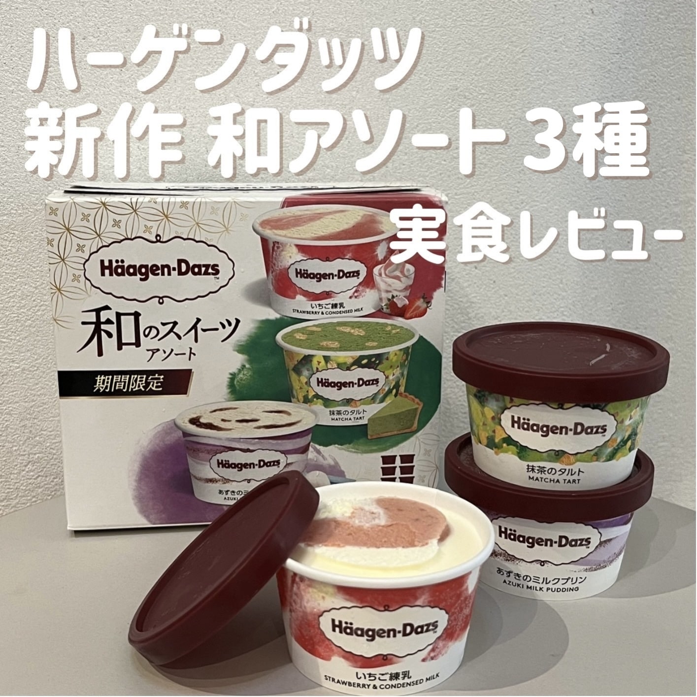 【ハーゲンダッツ新作】「和のスイーツ アソート(いちご練乳・抹茶のタルト・あずきのミルクプリン)」気になる全3種を実食レビュー【3月24日発売】