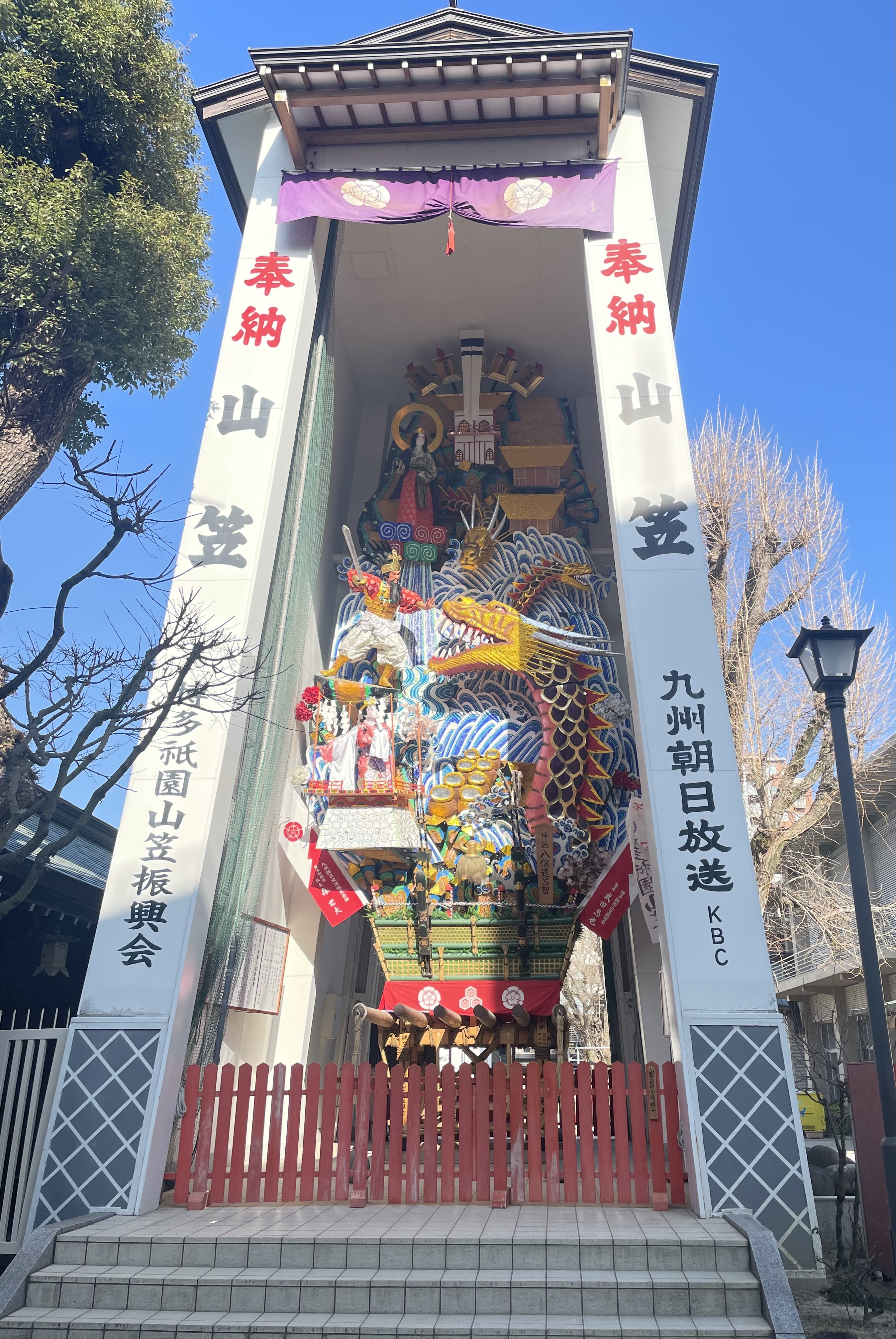 境内には博多祇園山笠で奉納される山鉾が飾られていました。