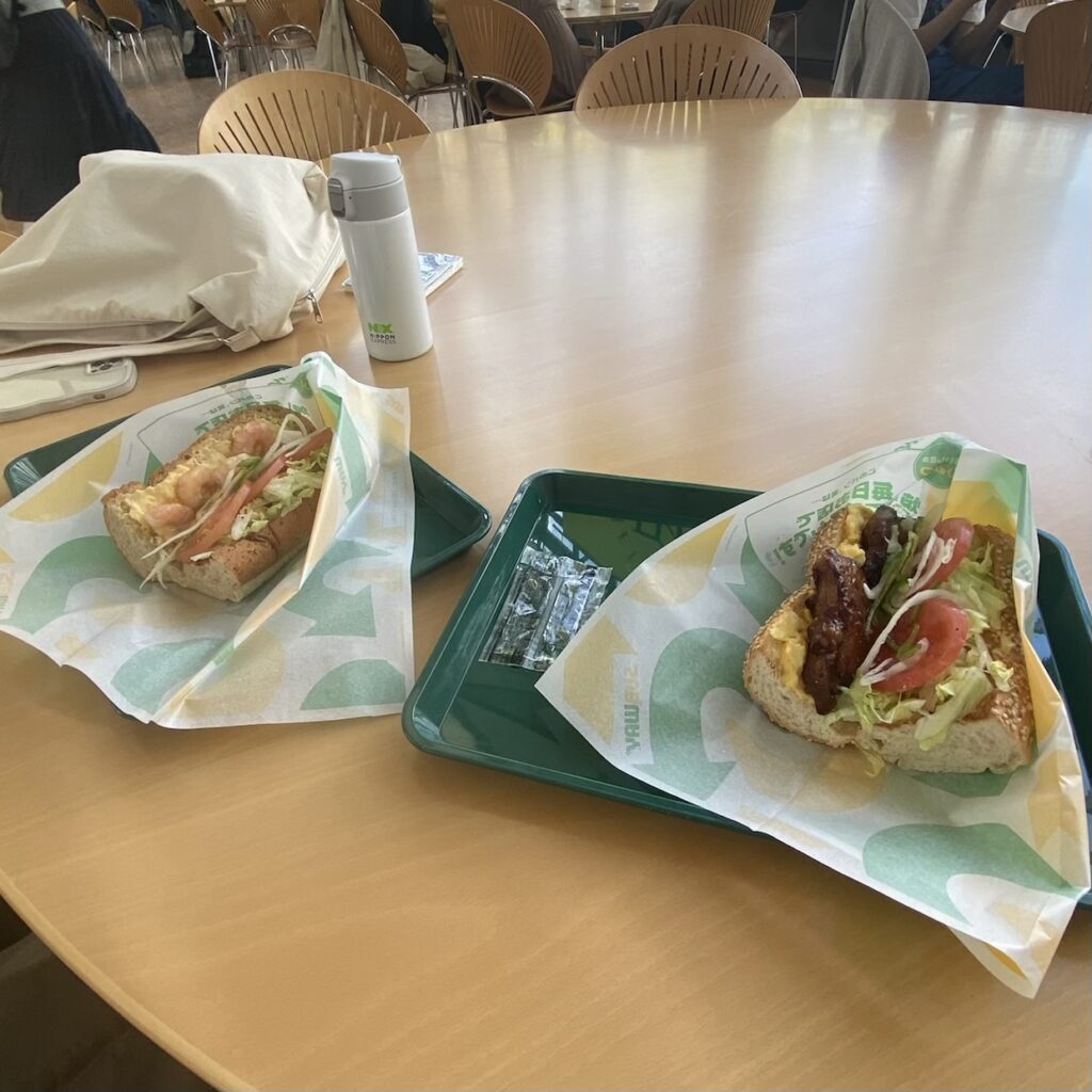 大学にはサブウェイがあるので、友達とお昼に食べたりしてます!いつも並んでいるため、空きコマが午前中にある時は、周りの人より早く並べるので空きコマがある人の特権だと思ってます🔥
