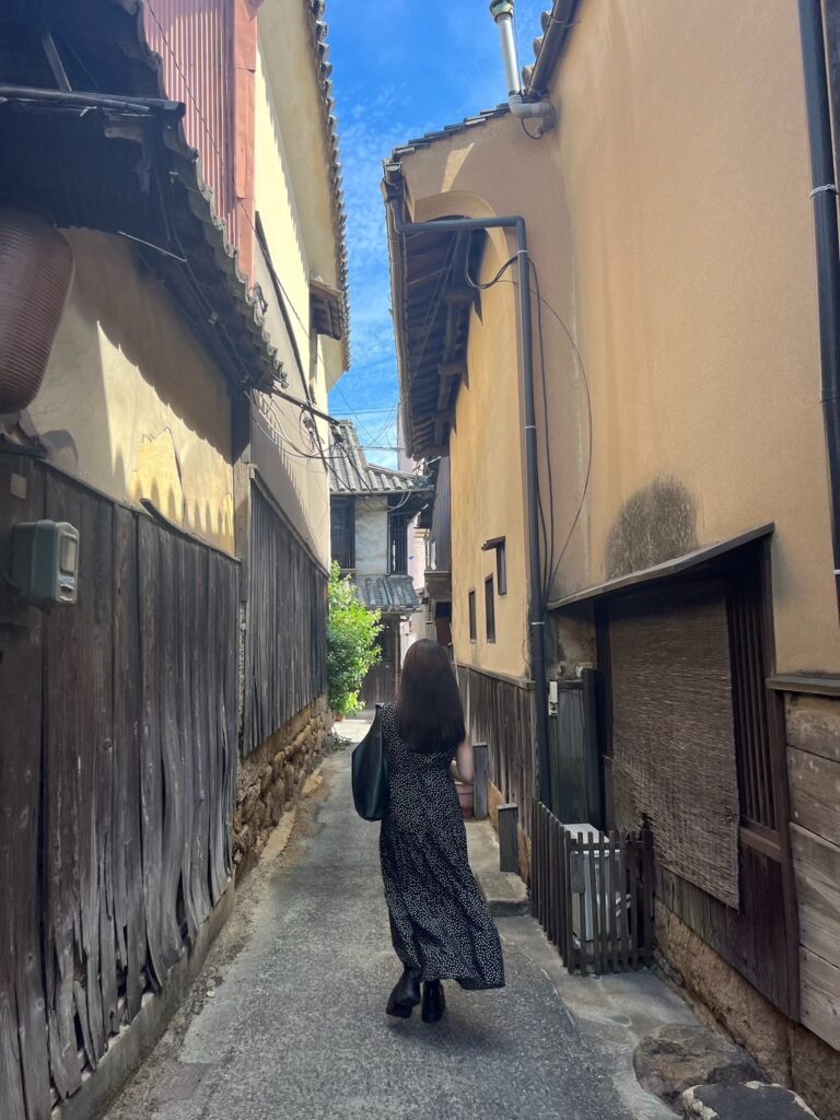 風情ある建物や石畳、迷路のような細い路地、猫たちがひっそりと暮らす裏道、そして古民家カフェなどがたくさんあります。