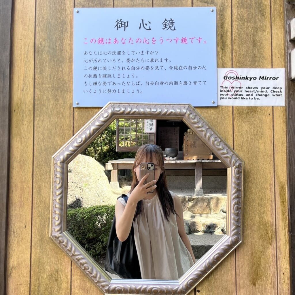 「この鏡はあなたの心を映し出します。」という言葉が書かれている鏡が…。心が汚れていると、姿かたちに現れる鏡だそうです。私も今の自分の状態を確認しました✌️