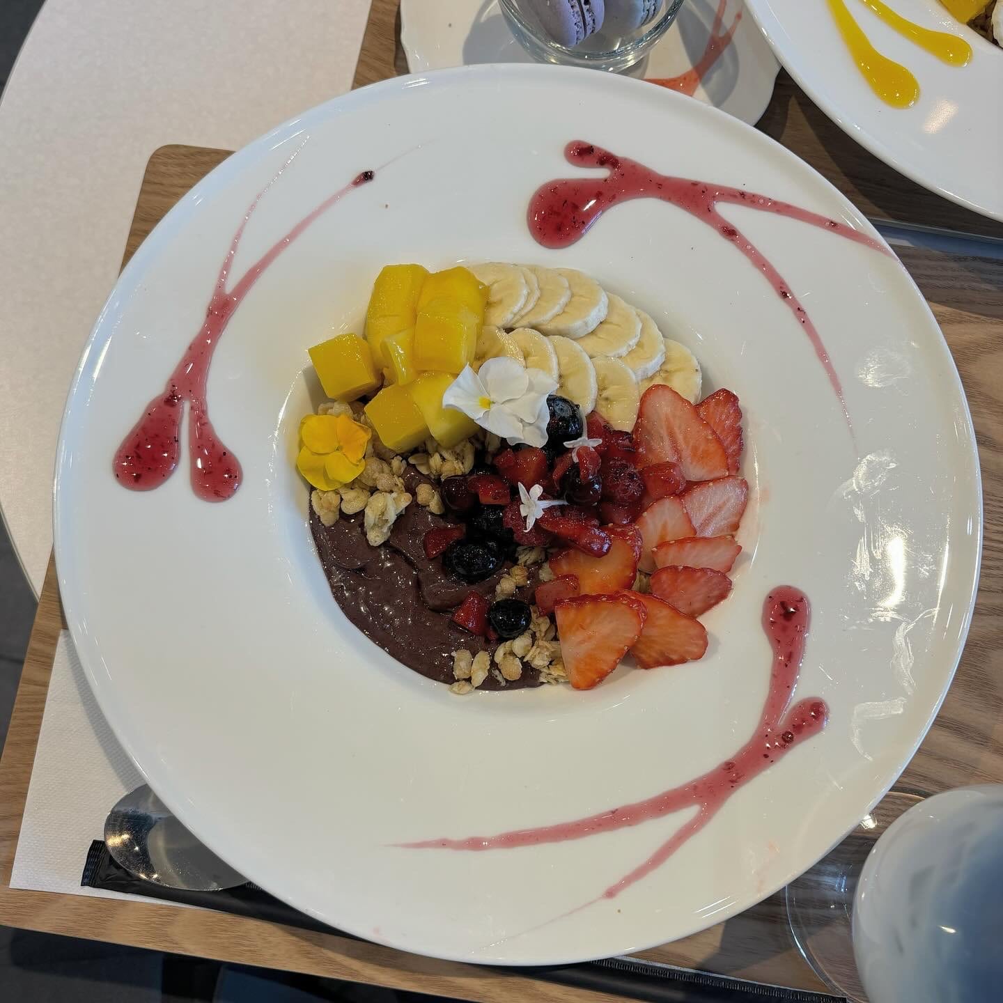 基本的にフルーツの種類以外の違いはありませんが、お皿のソースやエディブルフラワーが黄色に統一されていておしゃれでした:)