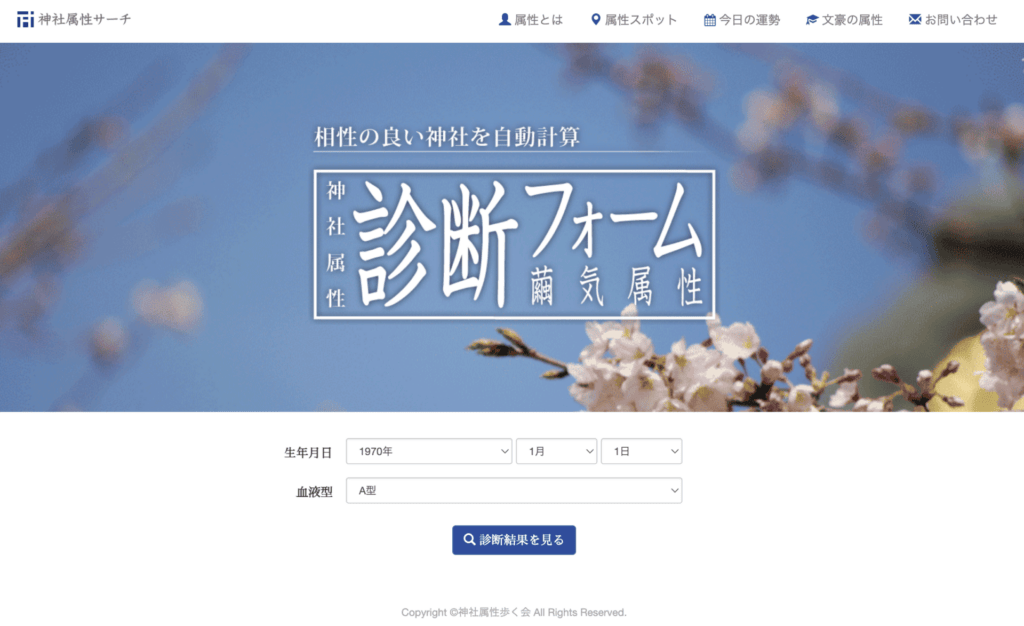 生年月日と血液型を入力するだけで、自分の属性がすぐにわかります。