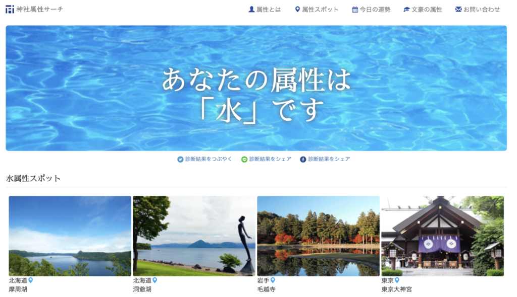 「確かに水属性に関連する神社、よく訪れていたかも…!」と、納得する結果に。
