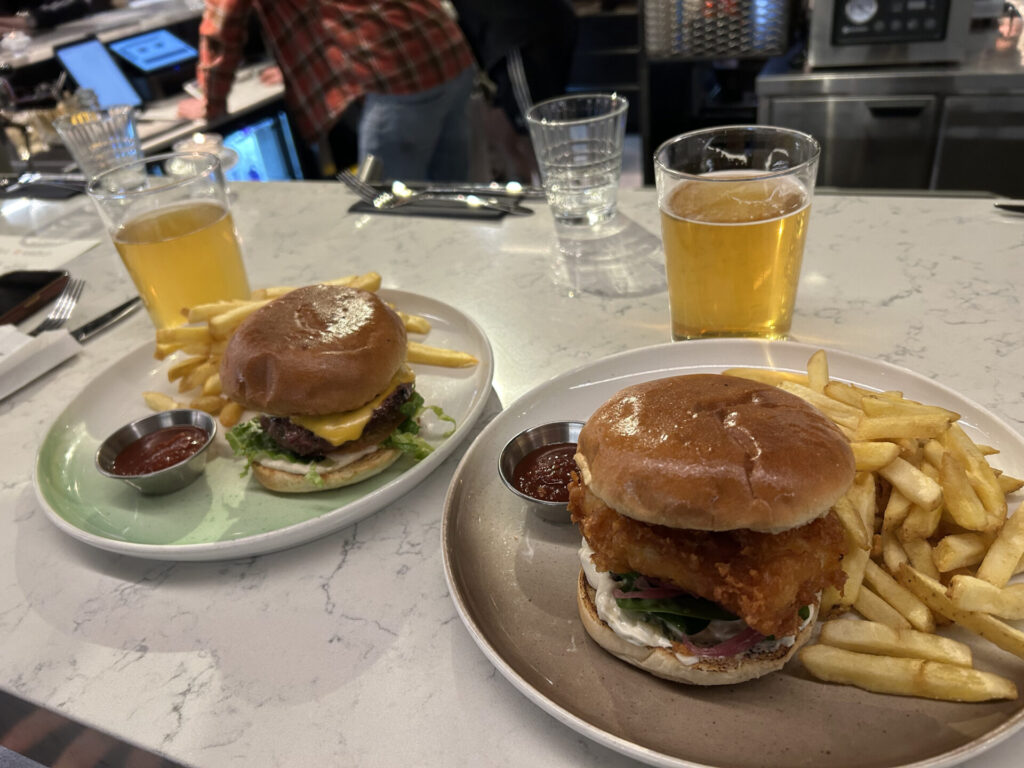 19:00頃、ホテルの近くのフードコートへ向かいました。そこでハンバーガーを注文しましたが、ここでも驚いたのはその値段。ビールが約1,200円、フィッシュ&チップスバーガーはなんと約4,800円もしました。特にアイスランドではお酒が高く、ビールやワインはすべて輸入に頼っているため、その分価格が上がるのだそうです。