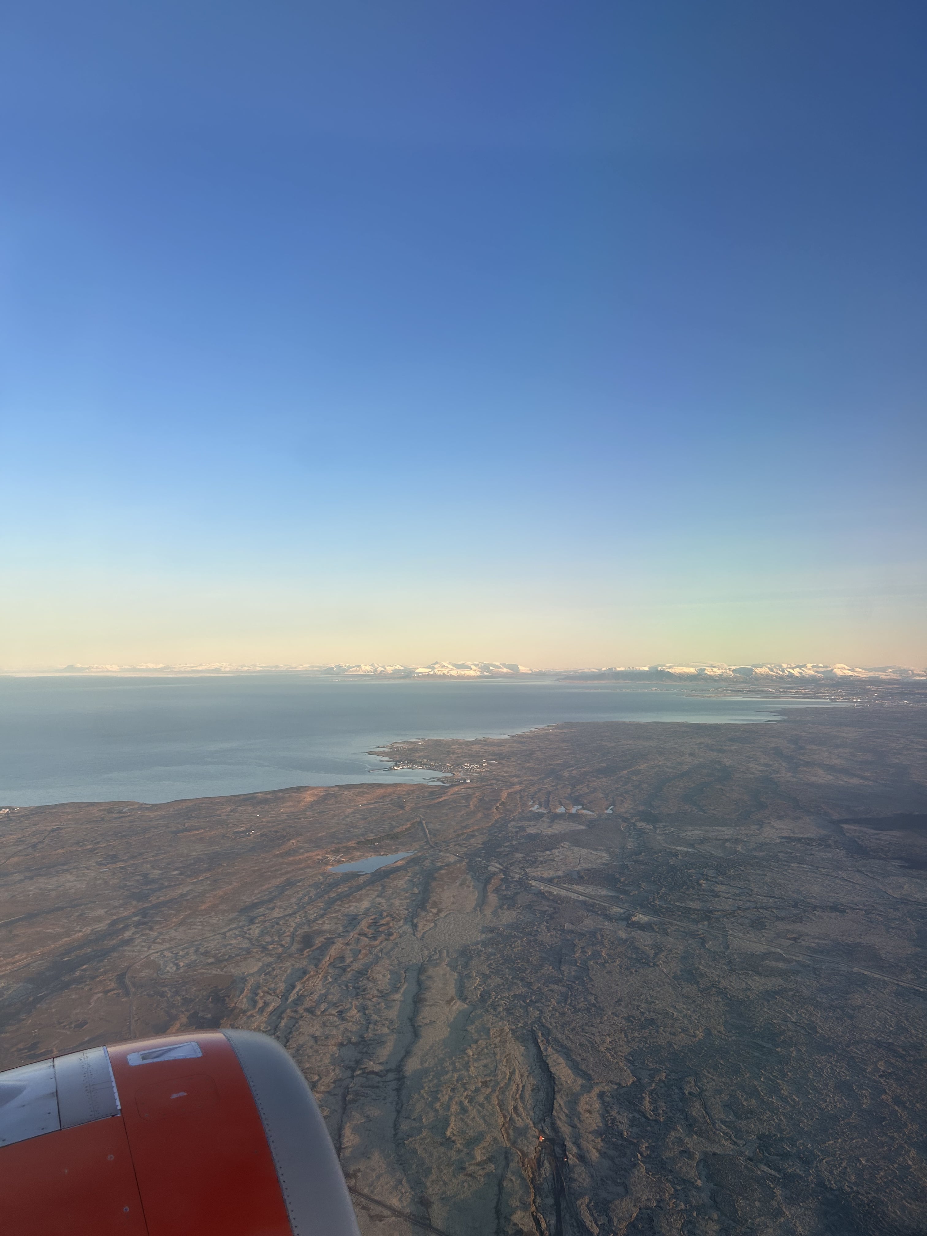 空港へは初日と同じシャトルを利用して向かいます。バスは1時間おきに運航しており、朝9時台の便に乗車しました。乗客は私を含めわずか5名ほど。静かな車内で、最後のアイスランドの朝の風景を目に焼き付けながら、ゆっくりと空港へ向かいました。