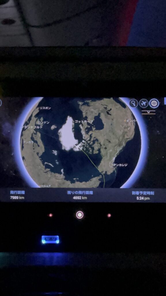 今回はロシアを迂回したルートのため、なんと北極圏上空を通過!!外気温は驚異のマイナス73c°❗️さ、寒すぎる…
