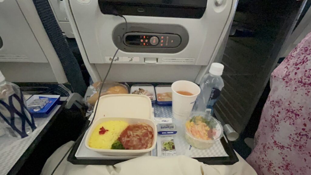 飛行機では機内食が2回出て、軽食のパンもいただきました。起きていないとスルーされます!笑
