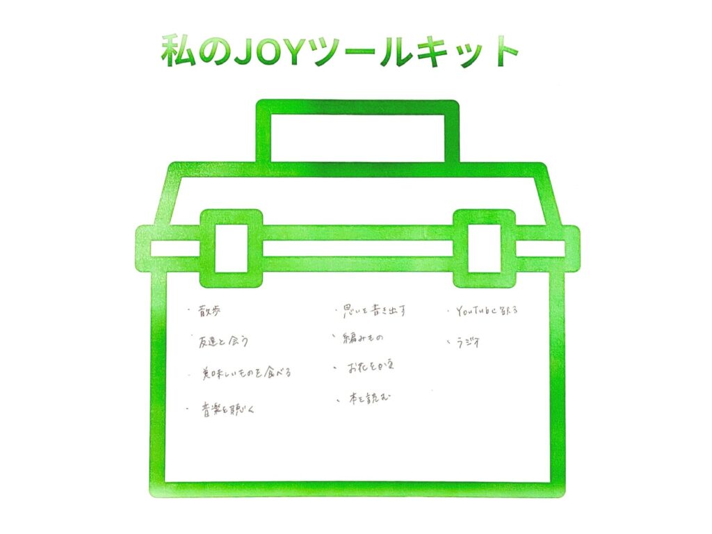最後に、自分のJOYのツールキットを作ります。自分がどんなときに「JOY」を感じるのかを知り、書き留めておくことで、感情をコントロールしやすくなります!