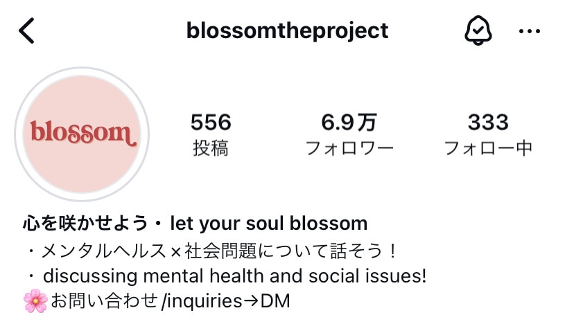 「blossom the project」は、インスタグラムを中心にメンタルヘルスと社会問題について発信している団体です。