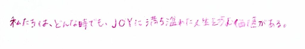 私たちは、どんな時でも、JOYに満ち溢れた人生を歩む価値がある。