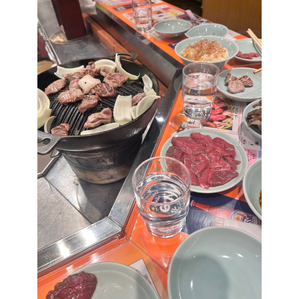 私は、ジンギスカンを自分で焼いて食べるのは初めてでした。