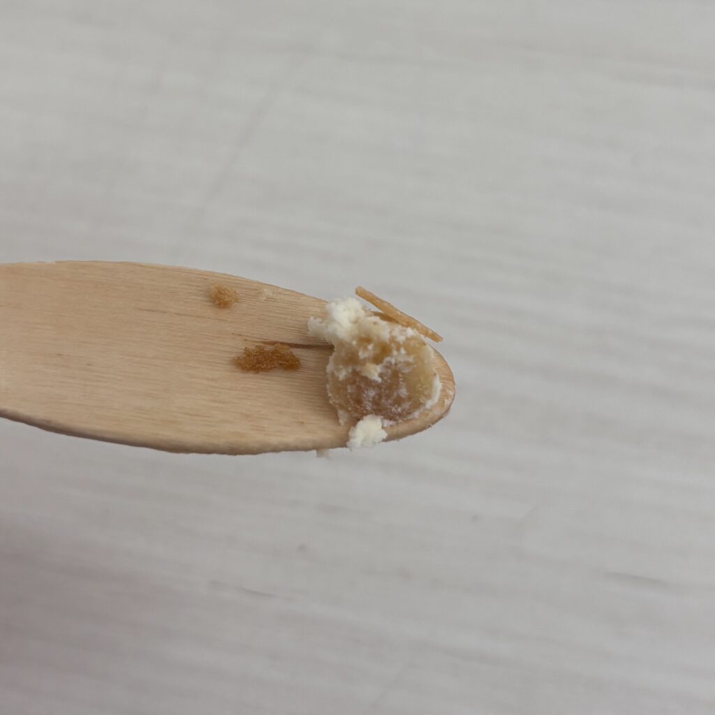 なんとフィアンティーヌの下には、ミルキーなバター風味のホワイトチョコレートがコーティングされていました!🤍