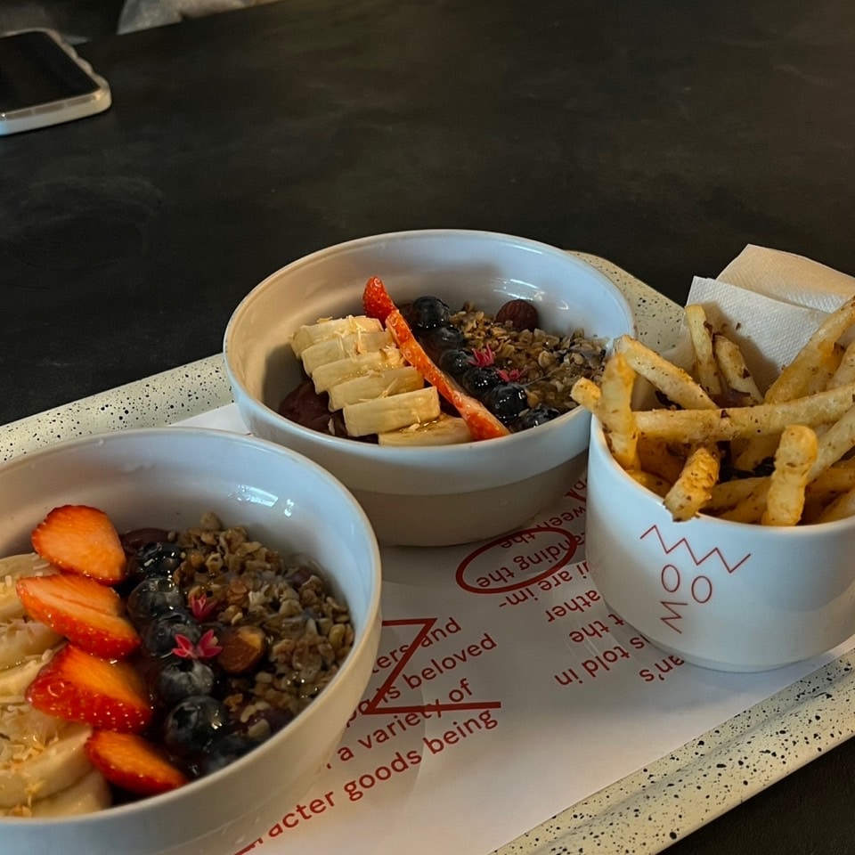 そして注文したのはアサイーボウル(1400円)とポテトフライ(500円)です。