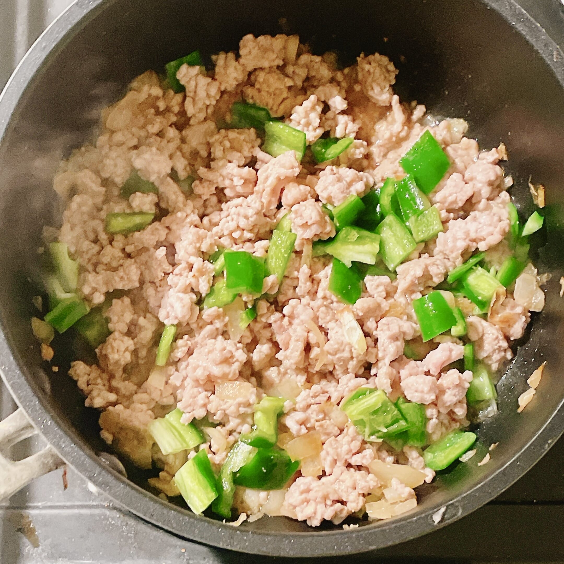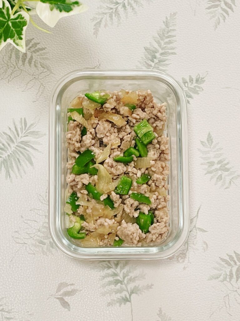そぼろにピーマンを加えて彩りをプラスした一品。月に2回以上つくるお気に入りメニューです!