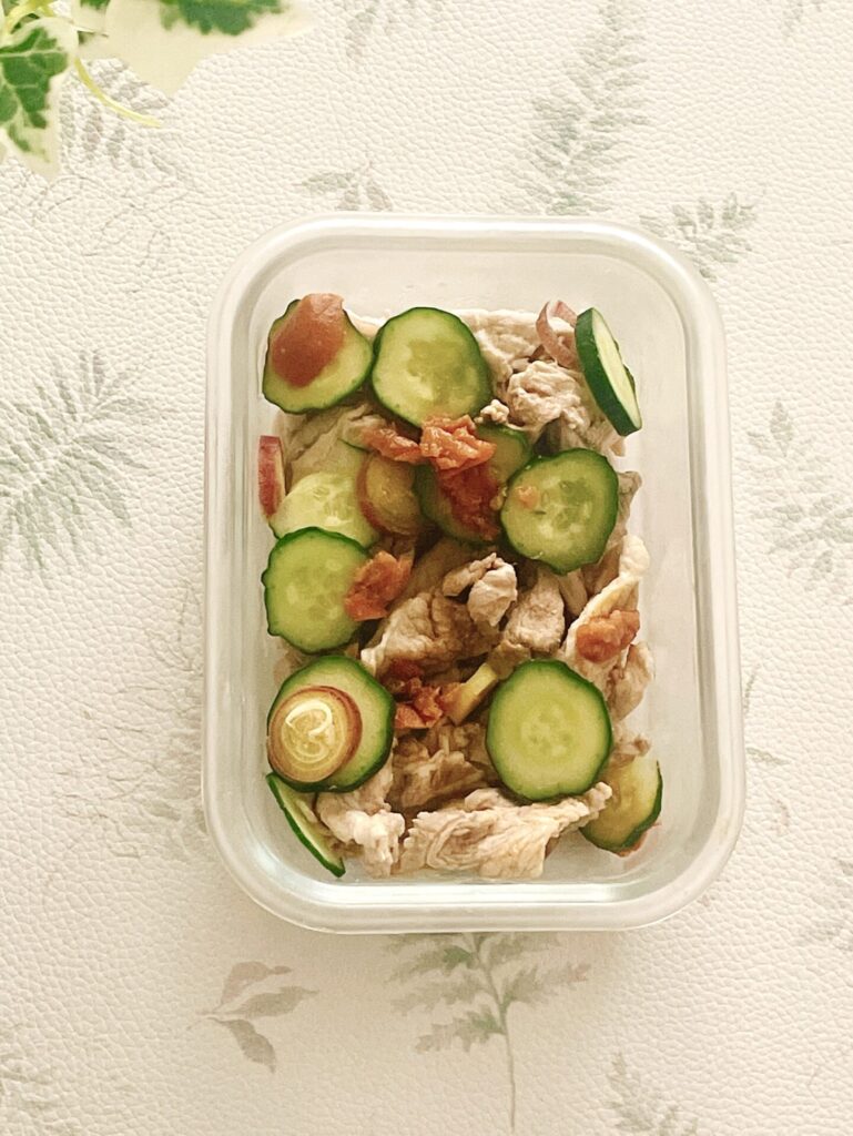 梅干しの塩味と肉の旨みが癖になる一品。お好みでチーズを入れても美味しいです!