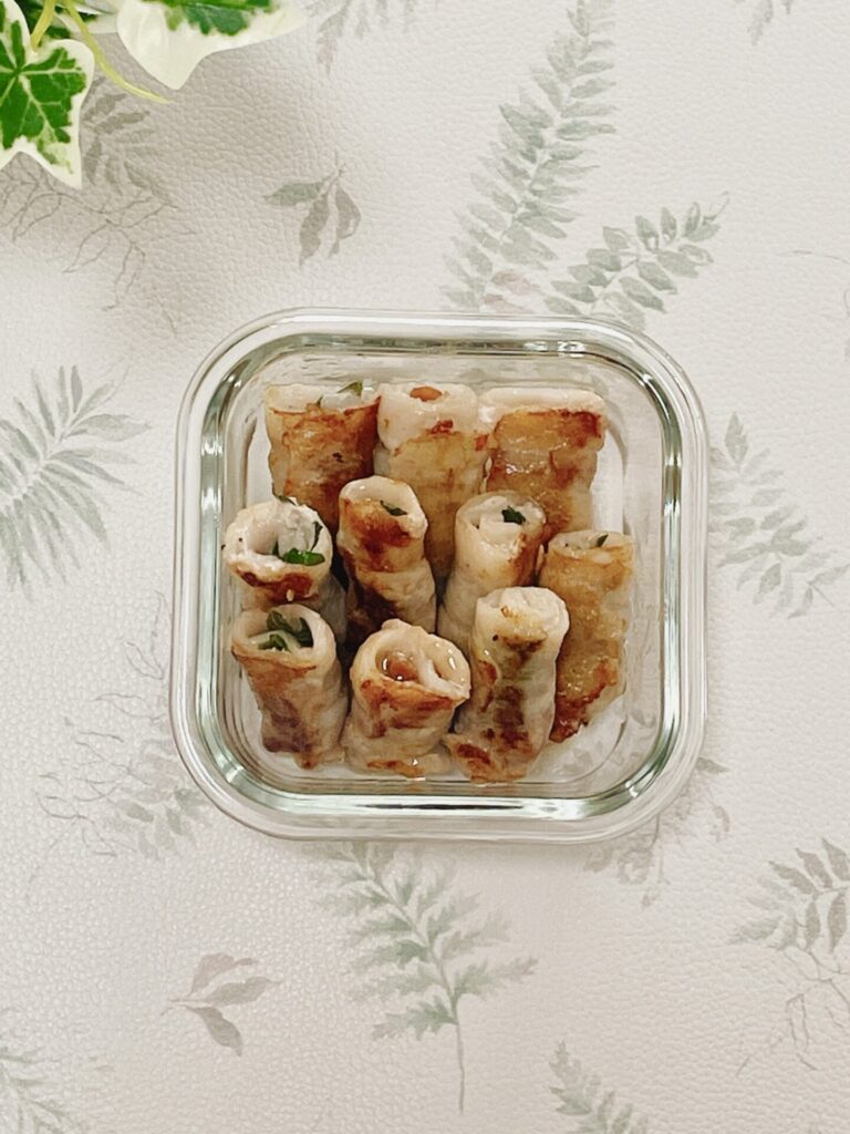 肉巻きは小さめの保存容器に入れると省スペースで収納できます。