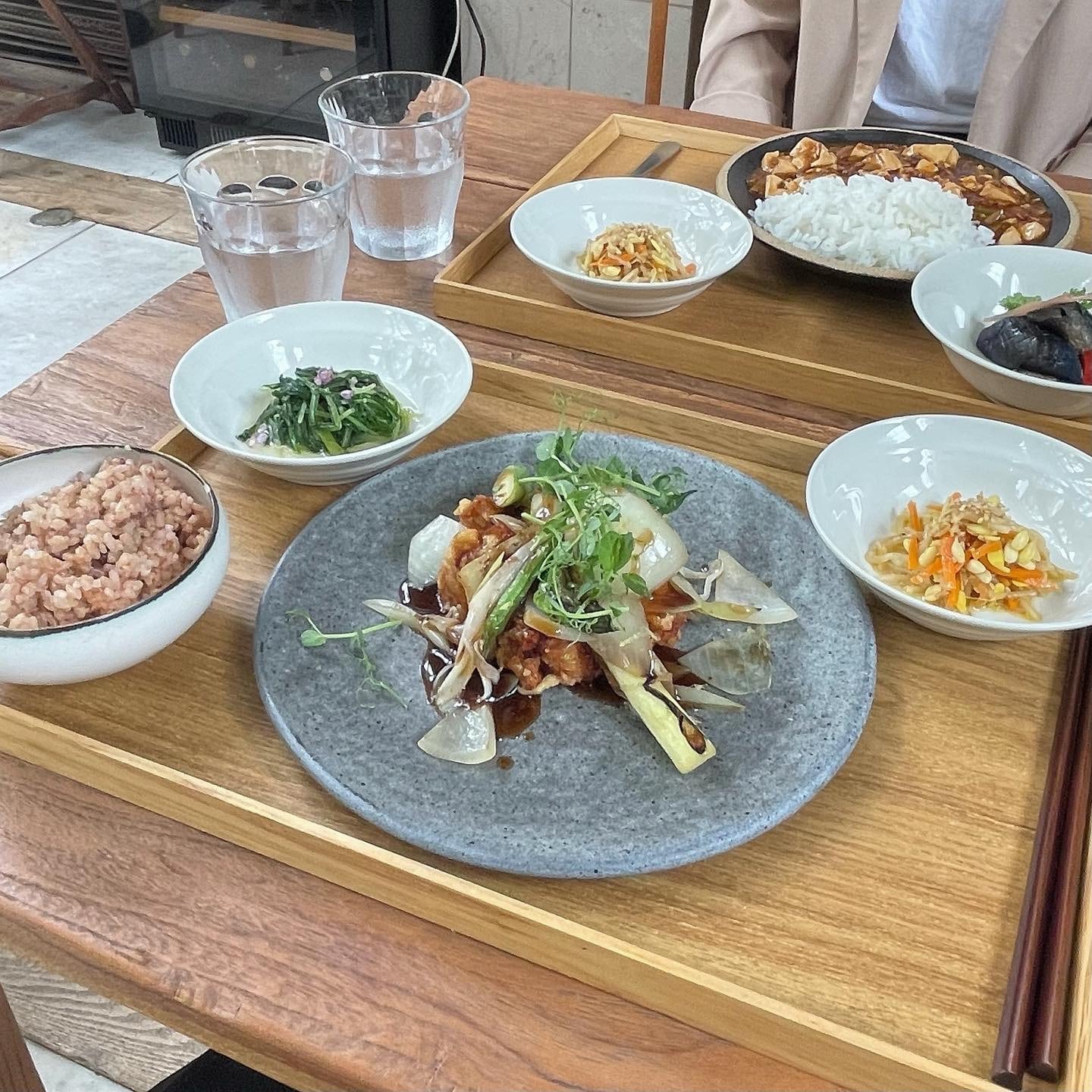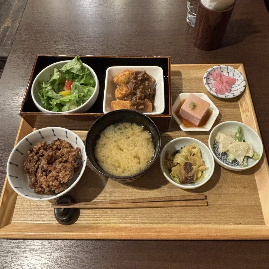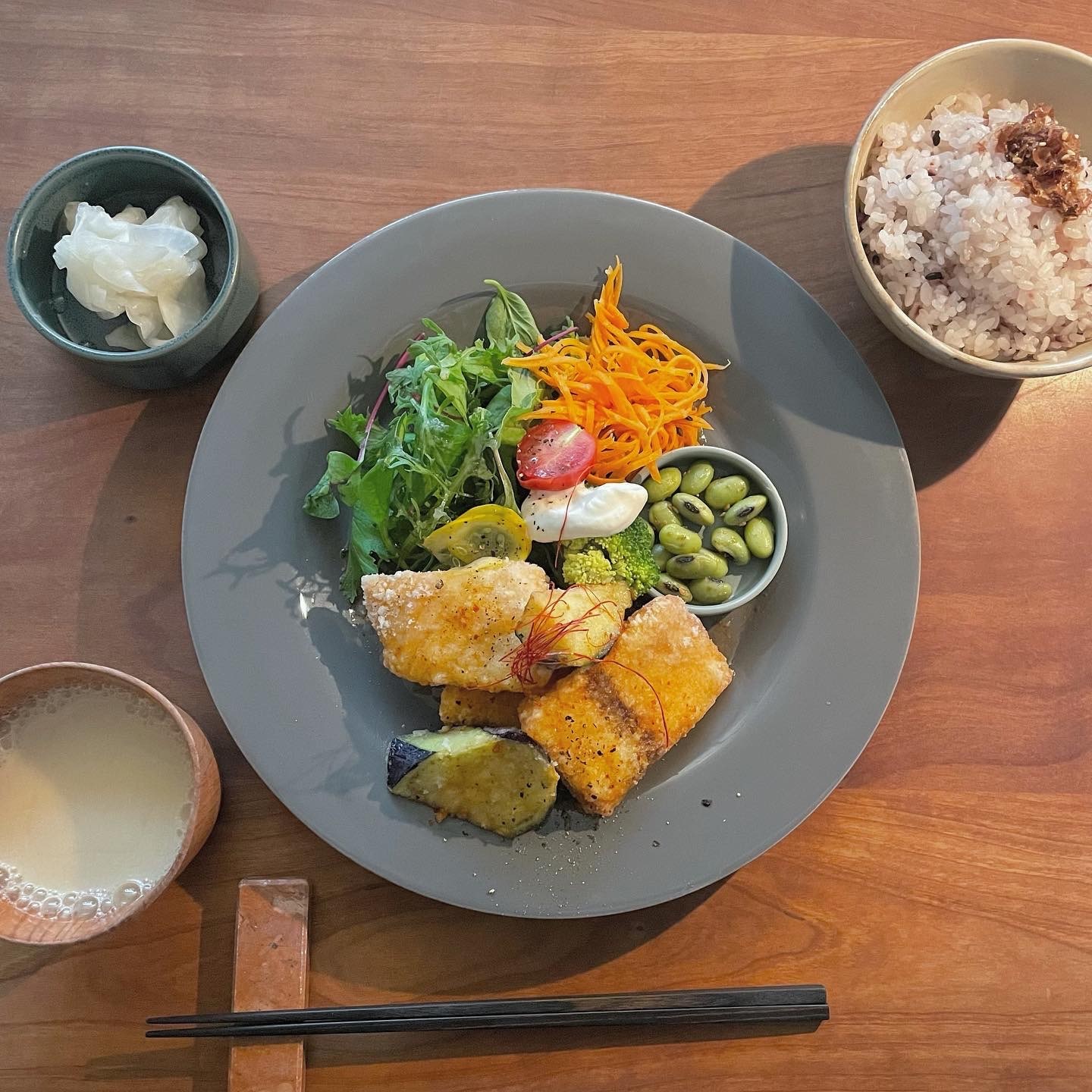 ご飯は黒米入り玄米でサイズも選べるので、一人一人にあった定食を食べられます。