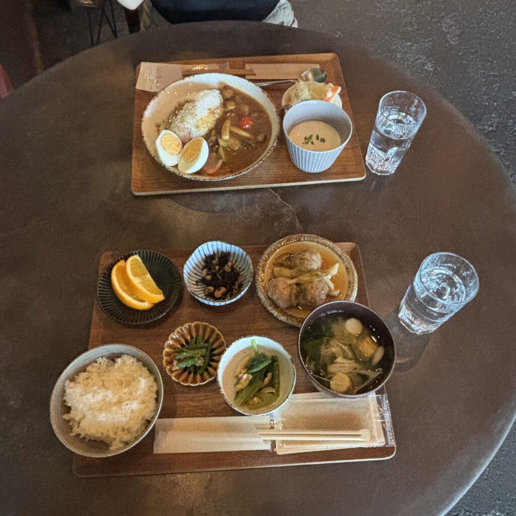 奥はカレーのセットで、野菜がゴロゴロ入っていたので美味しそうでした!