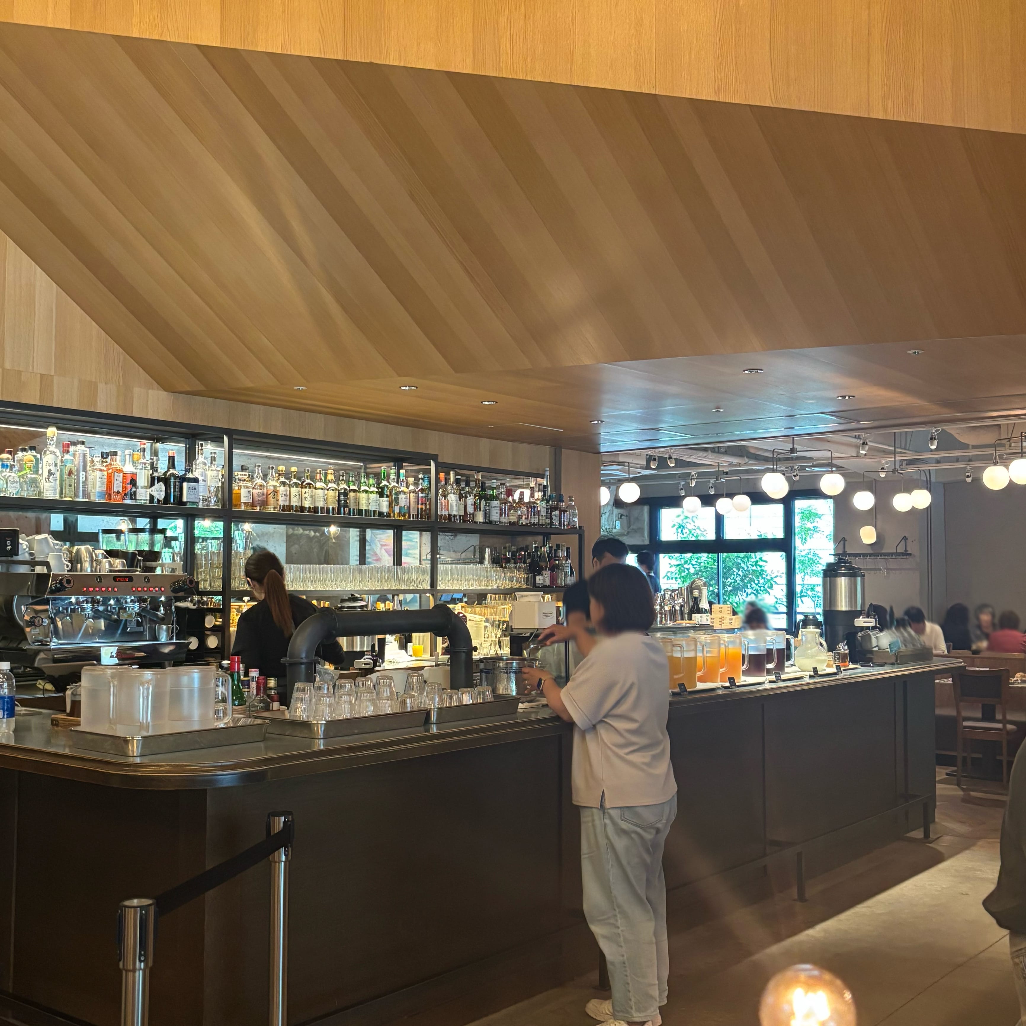 ドリンクコーナーの反対側にハイテーブル席があり、当日枠の場合はそこでの食事になる可能性があります。