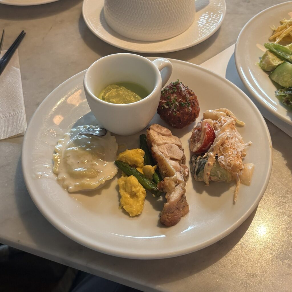 アペタイザーコーナーにあったカップに入ったアスパラのムースは、塩味強めですが冷たいのでさっぱりでした。