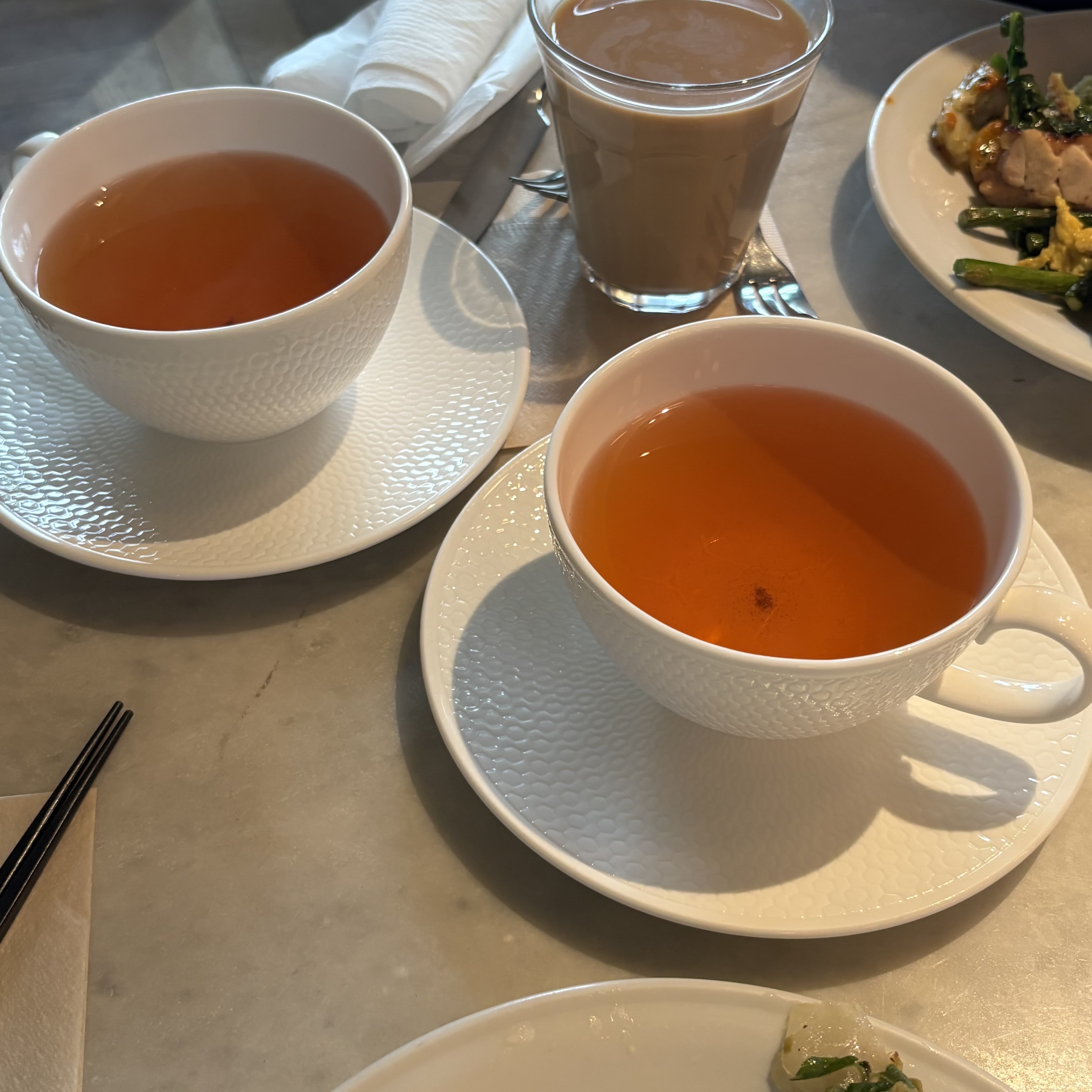 その時によって異なる種類のお茶を楽しむことができ、無くなったらすぐに注ぎにきてくれるサービス。