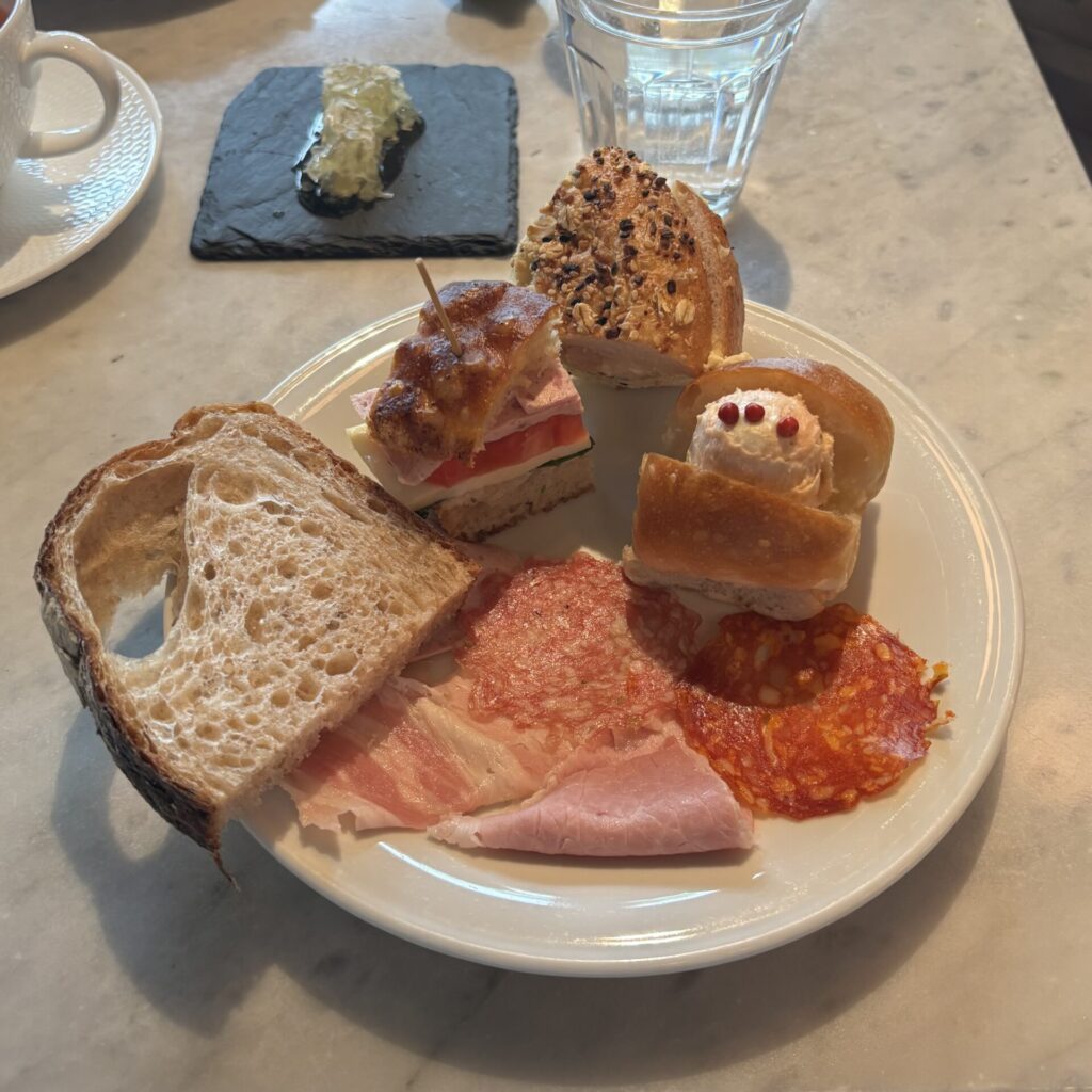 右にあるサーモンクリームのブリオッシュサンドはふわふわで、絶品!!