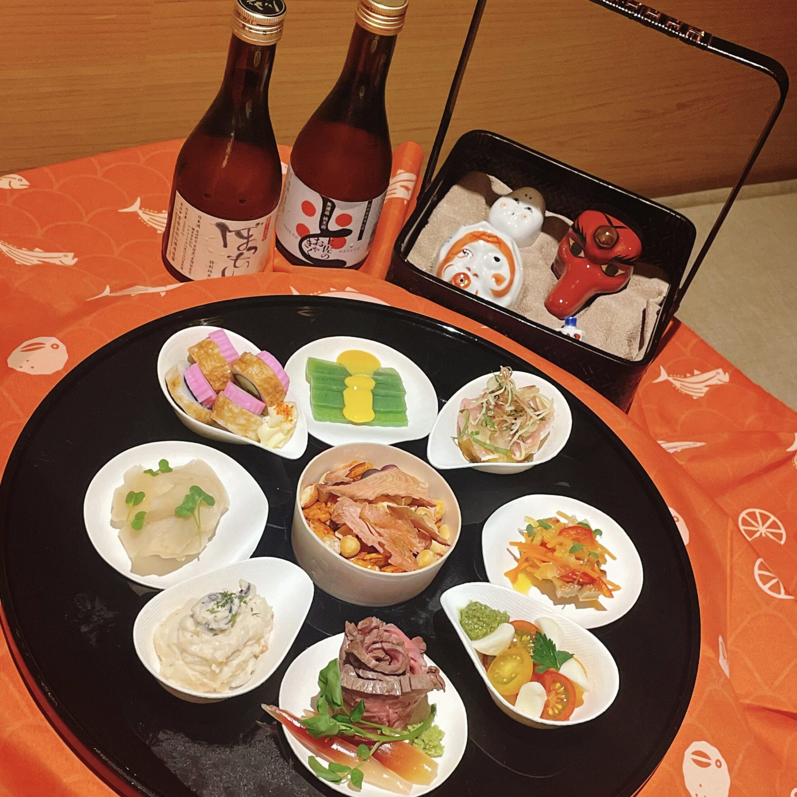 お部屋には円卓と皿鉢をイメージした赤い台があるため、そこにこちらを置いて食べるのがおすすめです。