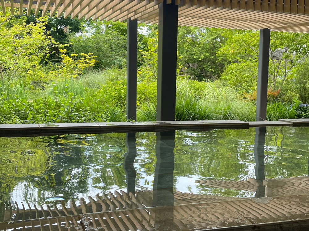 緑溢れる風景を眺めながら入る露天風呂は、ほっと一息つける素敵な空間でした🫧