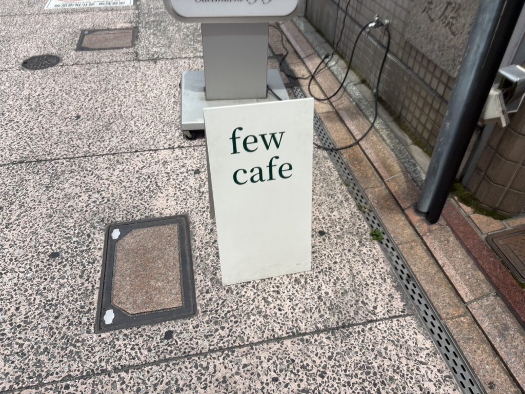 商店街から少し歩くと、 ”few”と書いた看板が見えてきます。