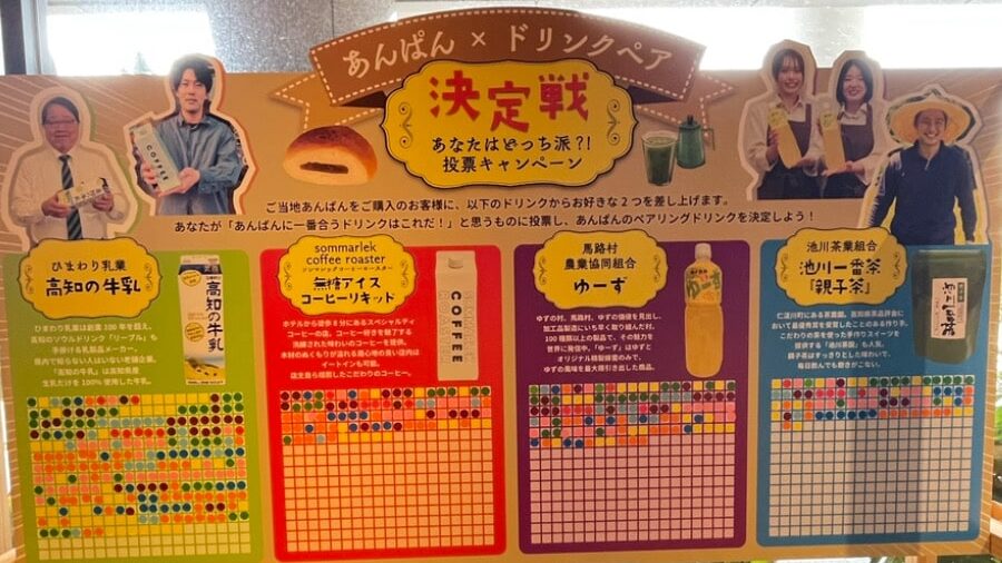 これは「あんぱんに最も合うドリンク」を決める投票イベントです。