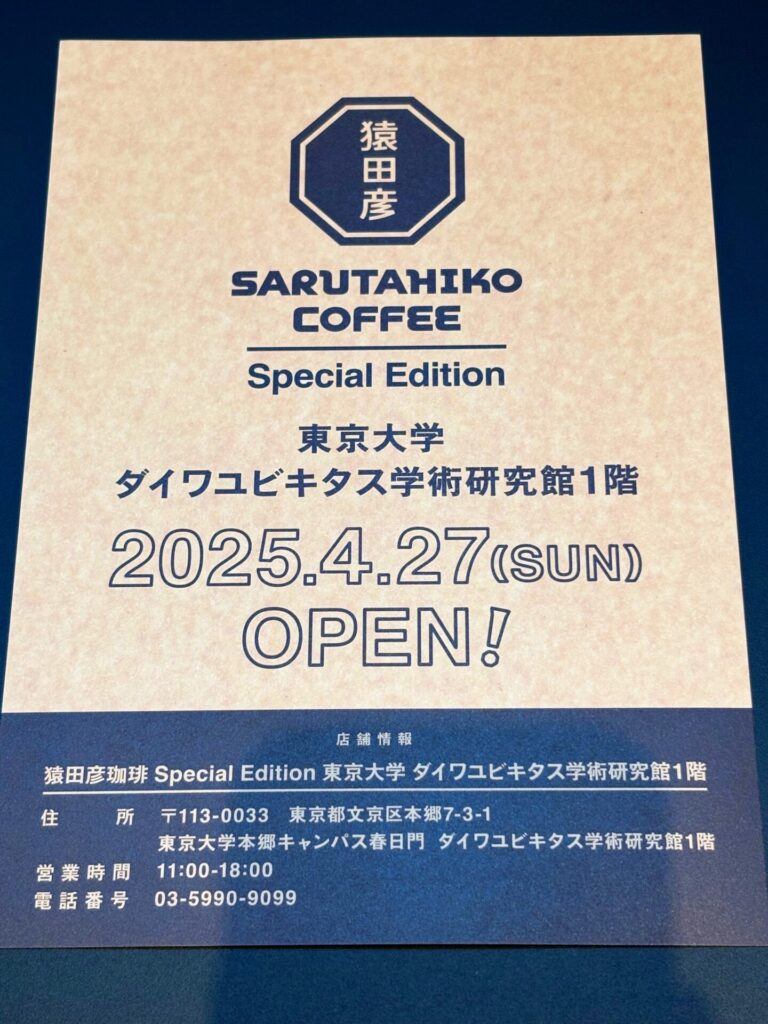 【東大生半額】東大に4月ニューオープン、特別な猿田彦珈琲に行ってきました!