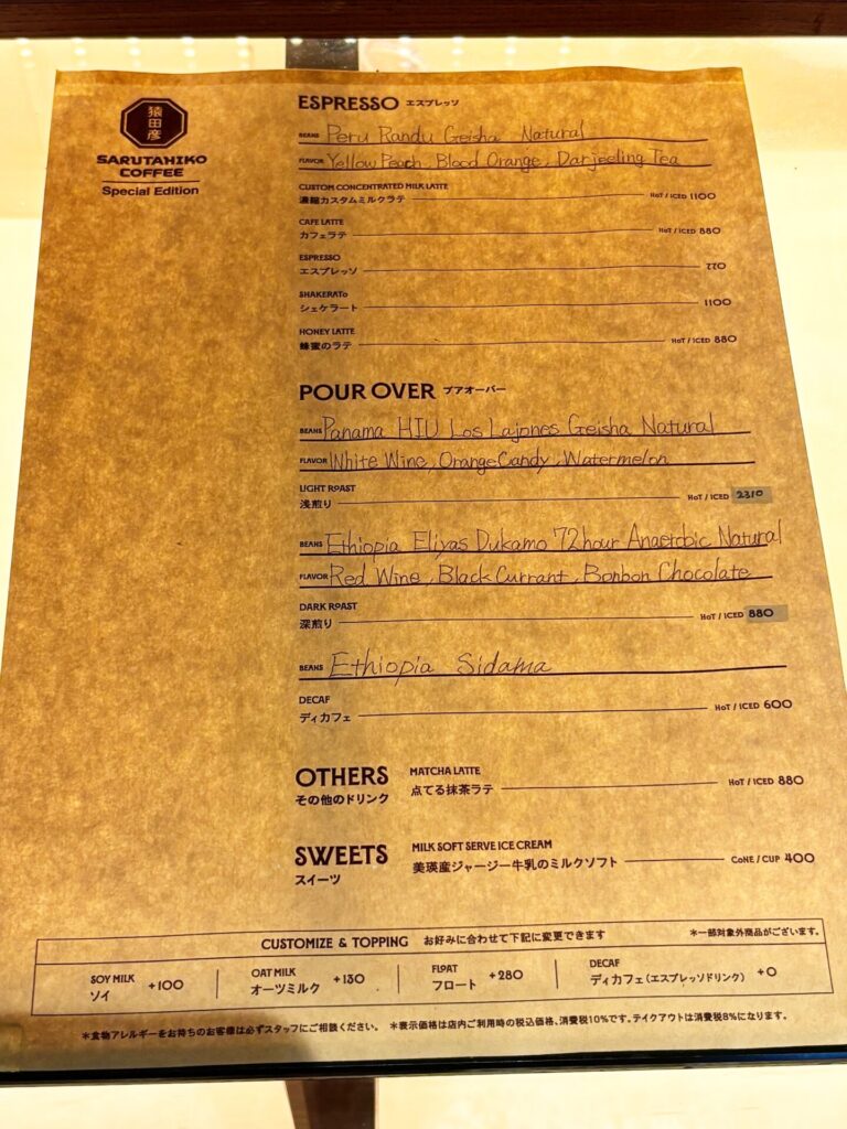 4/27にオープンしたばかり、「猿田彦珈琲 Special Edition」と銘打たれたこのコンセプトショップは、猿田彦珈琲の中でも上位ランクの特別な豆のみを使用したコーヒーを提供しているんだそうです!
