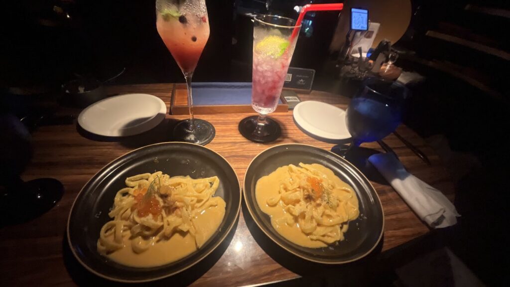 コース料理はどれも美味しかったのですが、特にパスタが生パスタになっていてもちもちでいくらとウニが乗っているのも特別感があってとても美味しかったです!