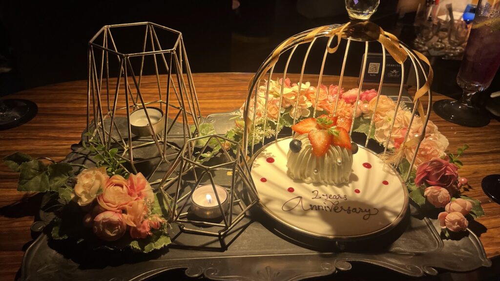 今回は記念日利用で鳥籠のケーキが出てくるコースを予約しました🍰