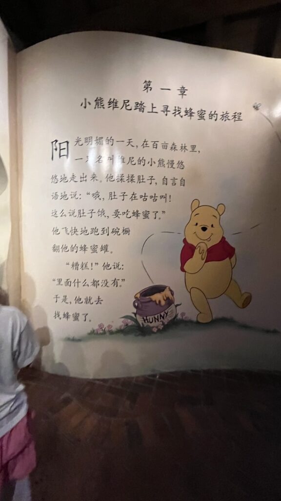同じくファンタジーランドのプーさんの冒険です。すべてが中国語でとても新鮮でした。こちらも待ち時間20分ほど。中国語学習者ならまた別の面白さがありそうです。