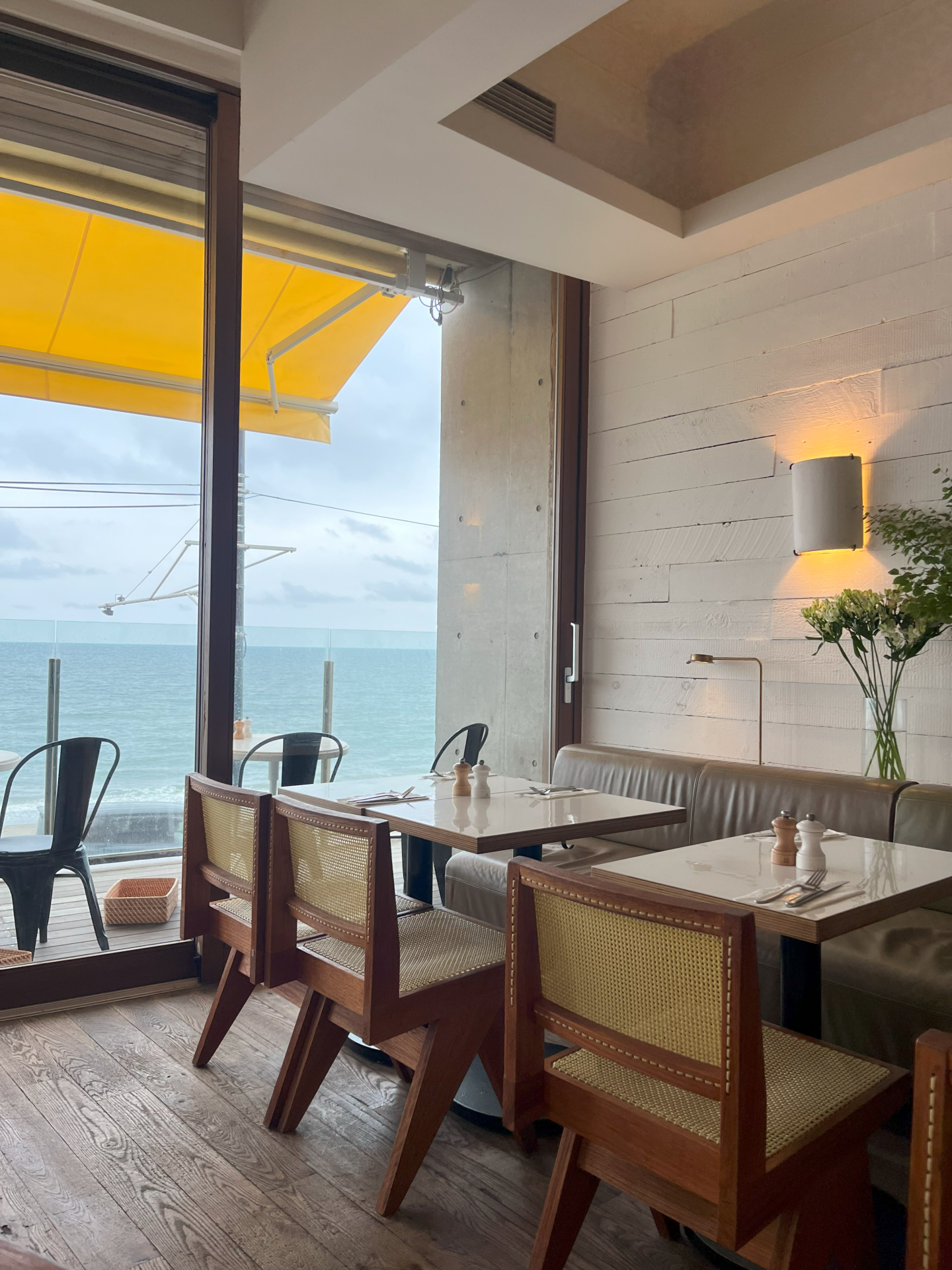 海が一望できるのに加えて、お店の中は壁が白で統一され、インテリアも飾りすぎずないシンプルな感じでとてもおしゃれでした!