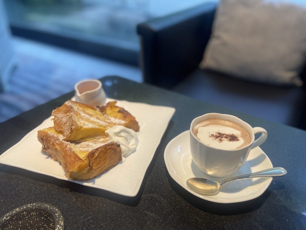 私は、プレミアムフレンチトースト(¥1,870)とホットココア(¥1,210)を注文しました。フレンチトーストは、外の部分はサクッとしているのに中はトロトロで、家で作るフレンチトーストとはまた違ってとてもおいしかったです!♥️
