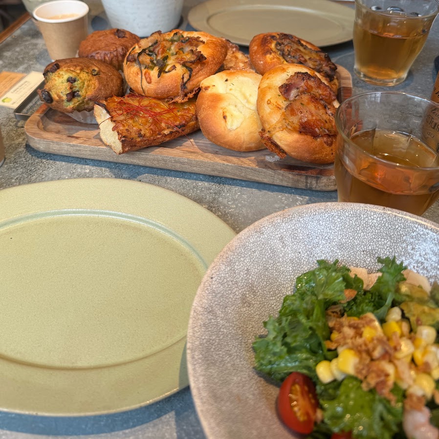 美味しそうなパンが並ぶベーカリーの奥に広がるスペースで食事を楽しむことが出来ます!