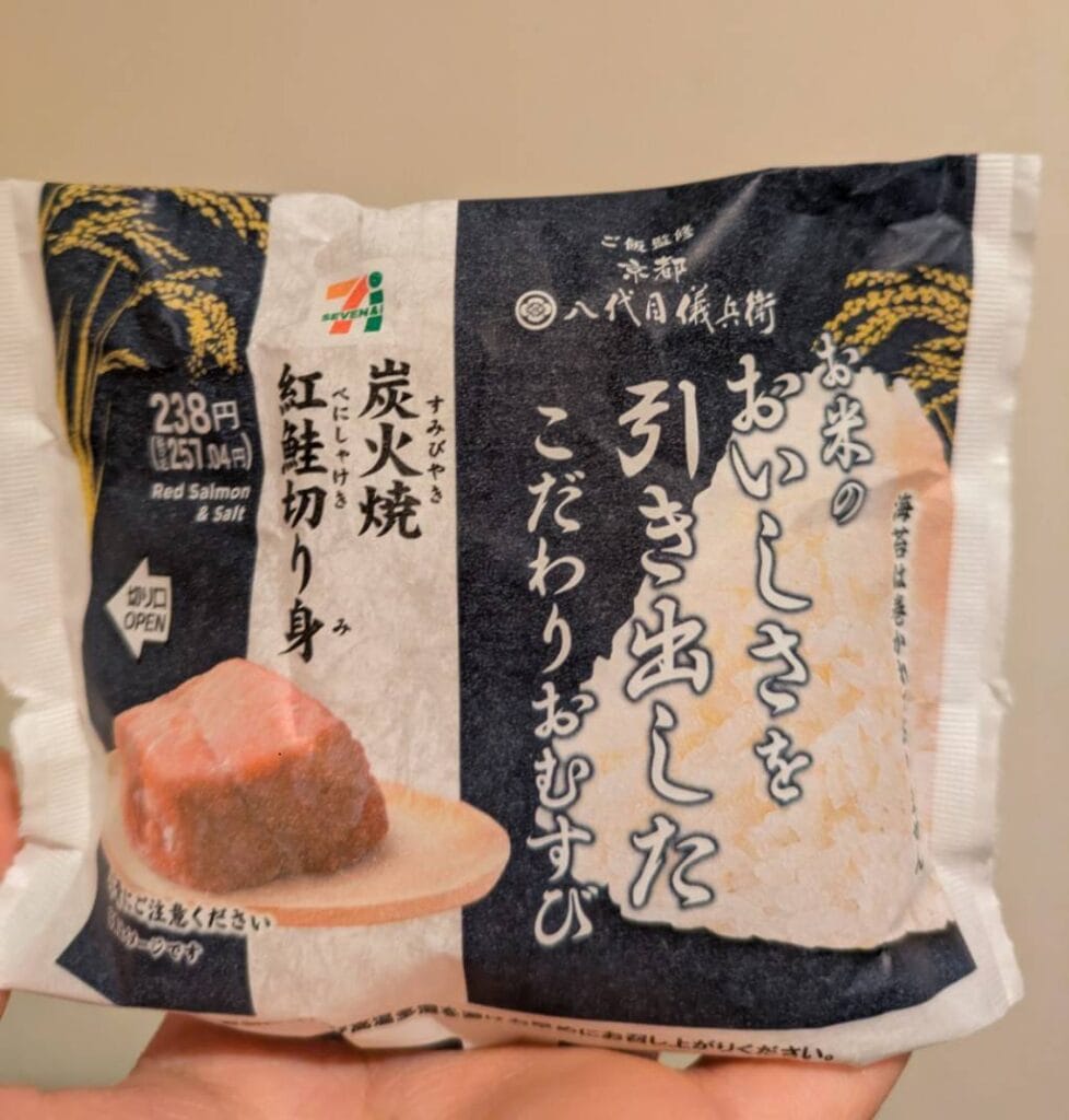 ①こだわりおむすび 炭火焼紅鮭切り身 (238円)