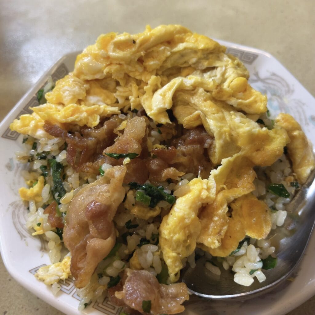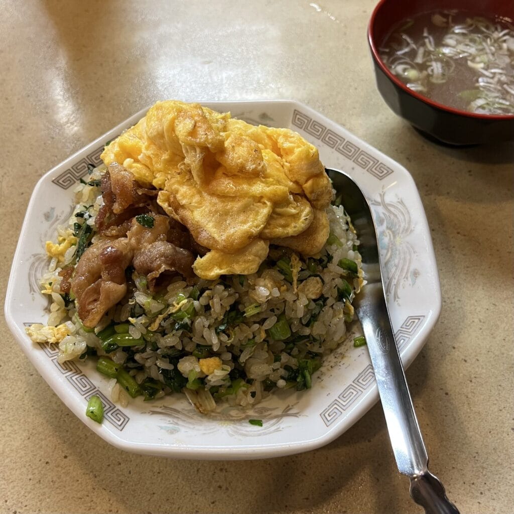 そして、ほとんどの人が頼むという、らんらんトッピング。「優しい塩味 (えんみ) の中華風オムレツ」と表現するのが良いでしょうか。とにかくふわふわで、たまりません! 焼飯とお肉の濃厚さを、優しく包んでくれます。