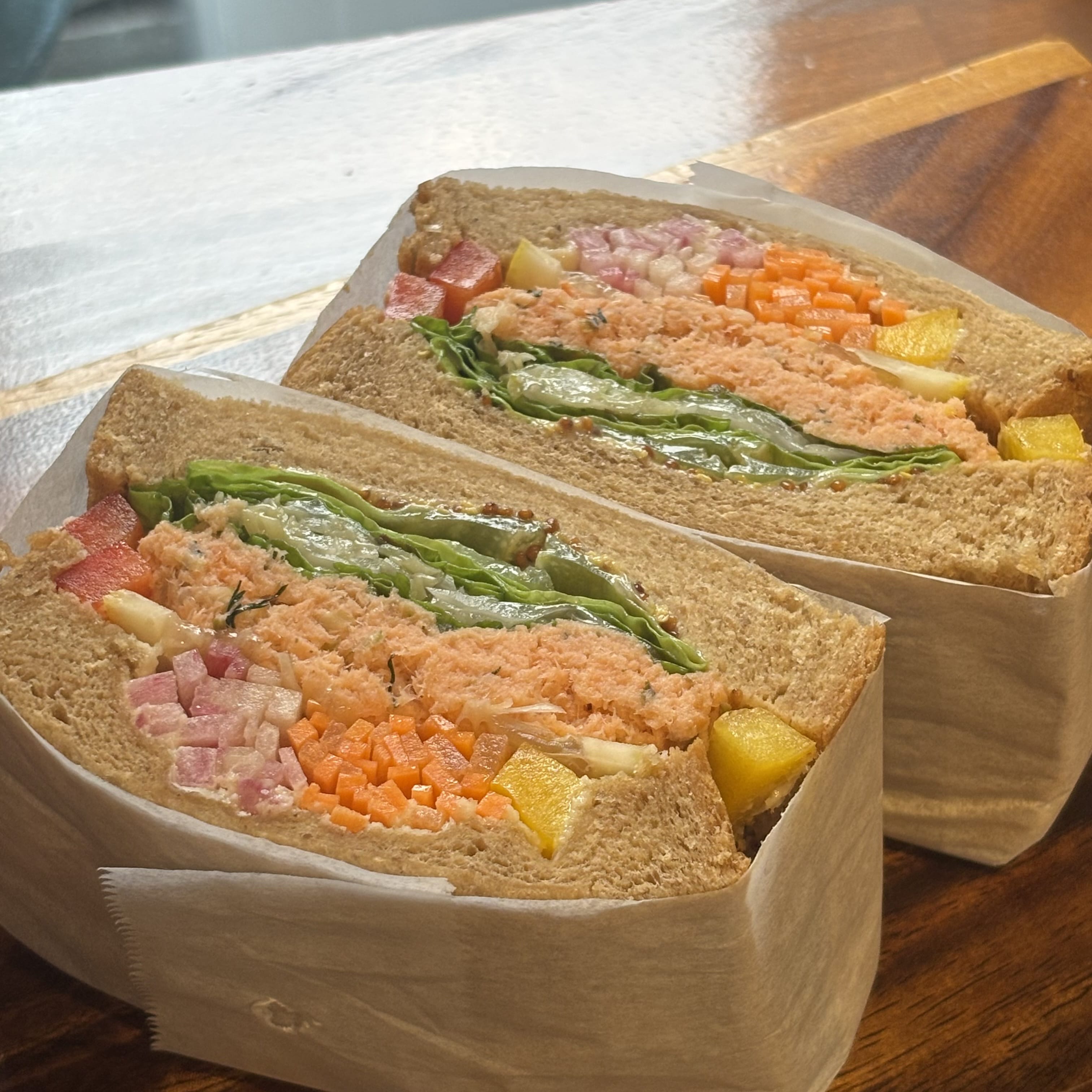 サンドイッチがメインのお店だったので、カラフルなヘルシーサンドイッチを注文。