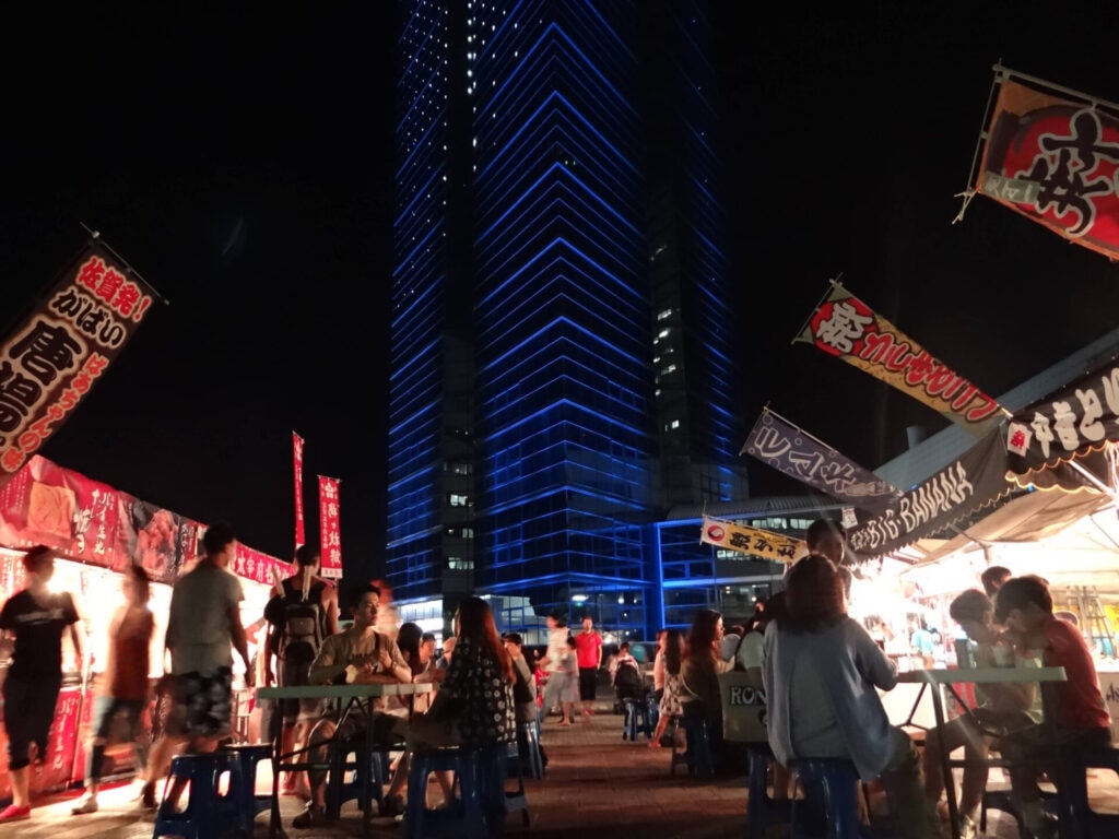 16:00〜22:00にタワー南側広場に焼き鳥、焼きそばかき氷など様々な露店が並びます。すぐそばの天の川イルミネーションを眺めながら楽しむことができます。