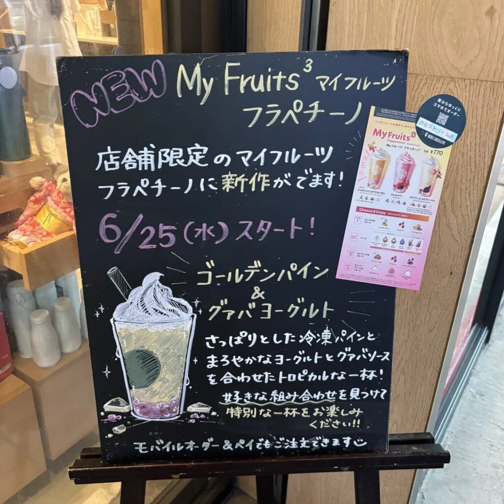 以前、My フルーツ3 フラペチーノからアサイーを使ったフラペチーノが発売され実際にレポをしたのですが、今回はそんなMy フルーツ3 フラペチーノから本日またまた新作が出たということで早速レポしてきました♪