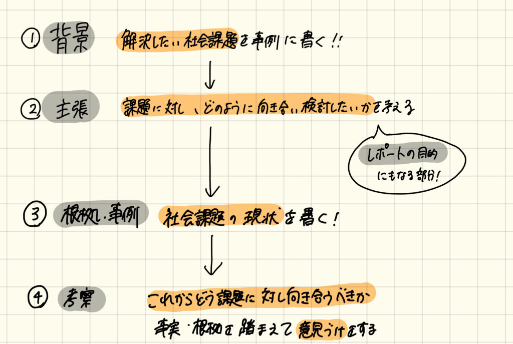 この構成で文章をまとめるだけで論理的なレポートになります♡