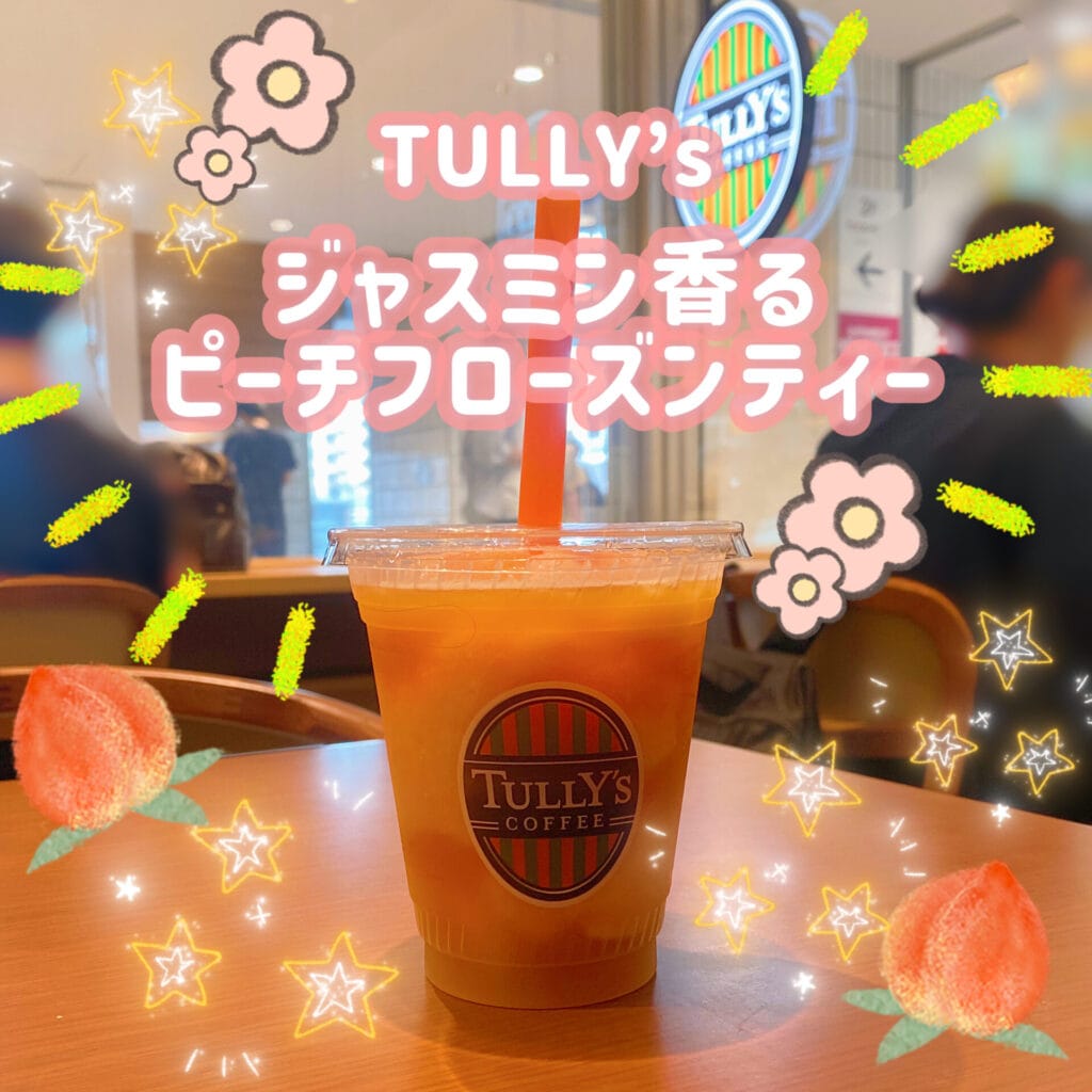 今回はTully’s COFFEEにて2025年6月11日より販売されている「&TEA ジャスミン香るピーチフローズンティー」をご紹介します!!ピーチ好きにはたまらない、夏にぴったりなドリンクでした。