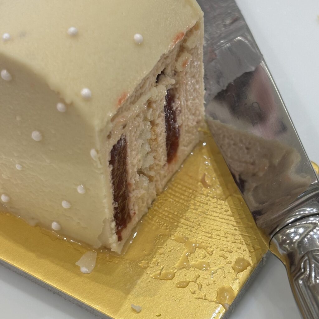 薄いホワイトチョコのコーティングがパリッとしていて、中身はムースになっています。