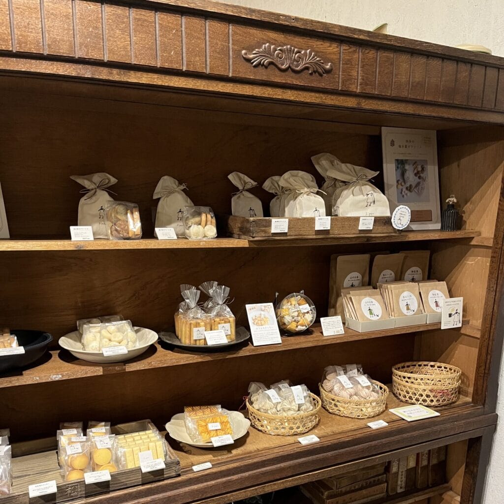 レジ横に並べられているケーキや焼き菓子はテイクアウトもできるようです。特に焼き菓子は、ラッピングがかわいらしく種類も豊富で、自分用のご褒美にもギフトにもぴったり。